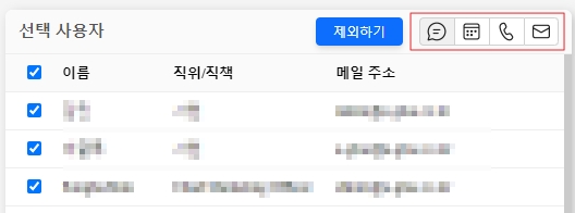 커뮤니케이션을 원하는 사용자 선택이 모두 끝났다면 섹션 우측 상단에 위치한 아이콘을 클릭해 원하는 커뮤니케이션을 이어 나갈 수 있습니다.