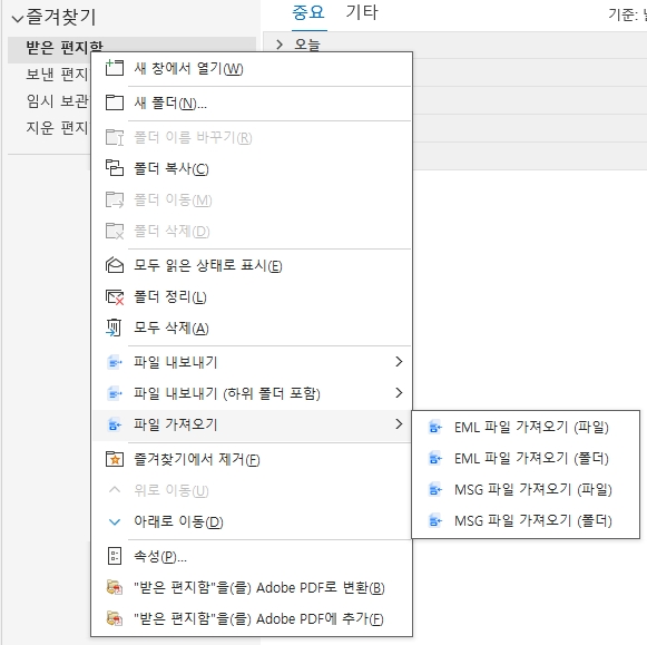 가져오기 작업이 완료되면 선택한 메일 폴더에서 메일을 확인할 수 있습니다.